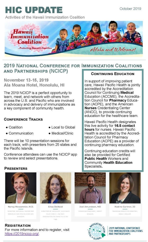 The Hawai‘i Immunization Coalition works to ensure all of Hawaii’s families are appropriately vaccinated against vaccine-preventable diseases.