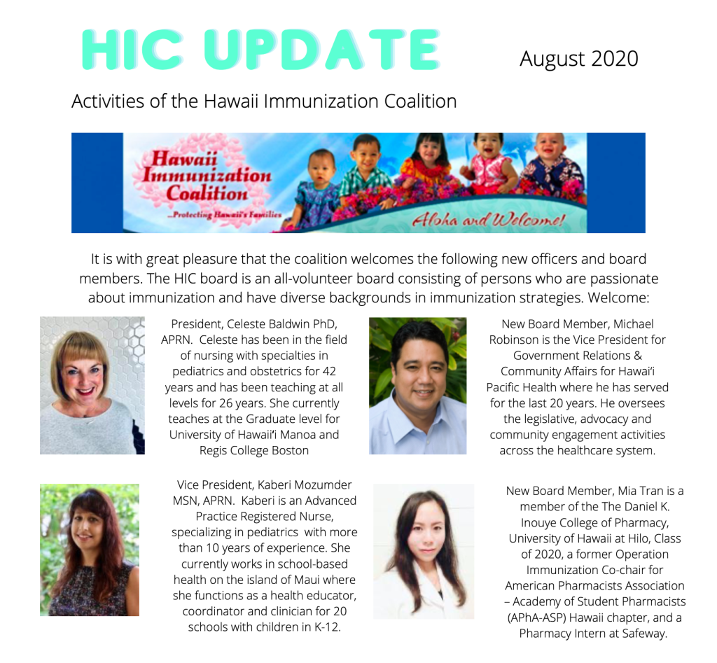 The Hawai‘i Immunization Coalition works to ensure all of Hawaii’s families are appropriately vaccinated against vaccine-preventable diseases.