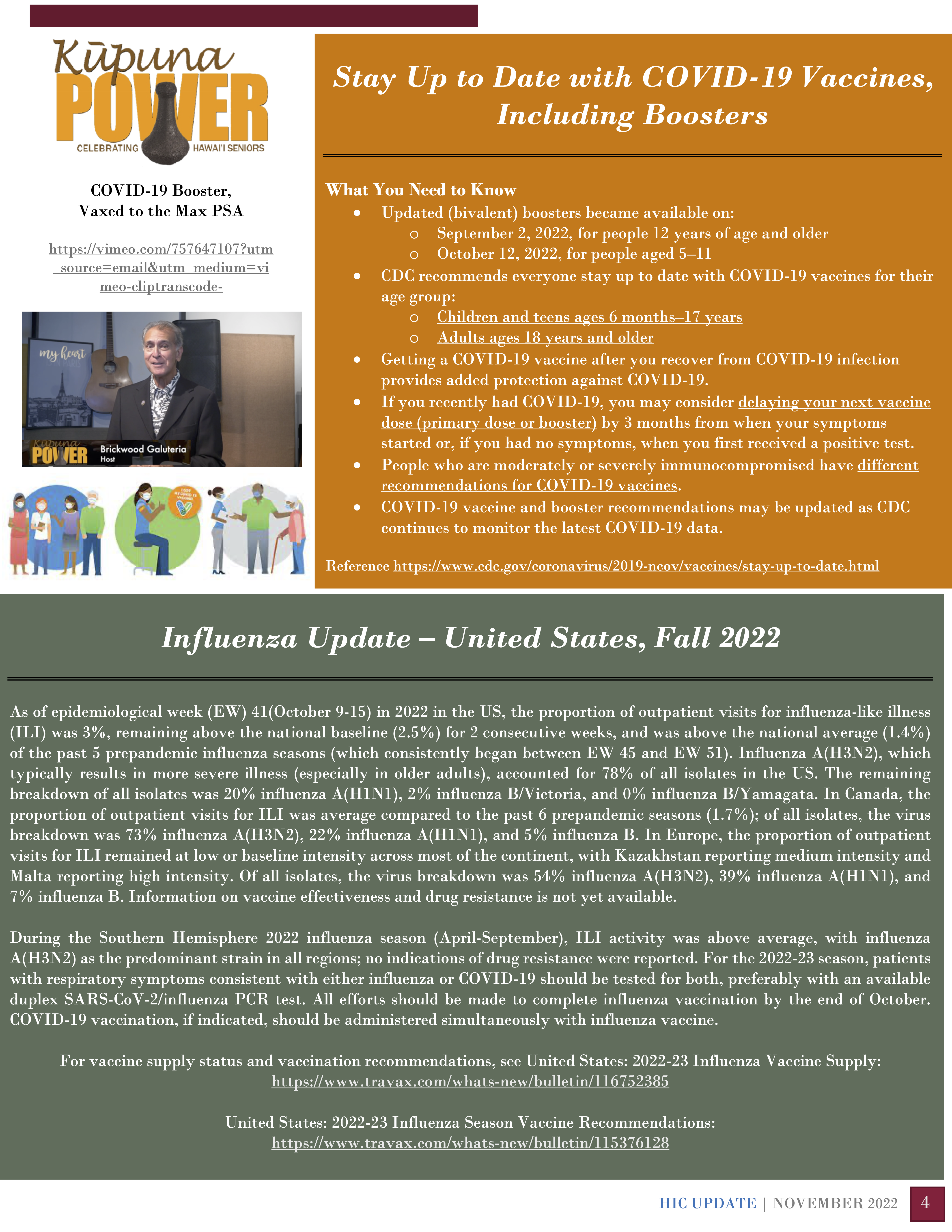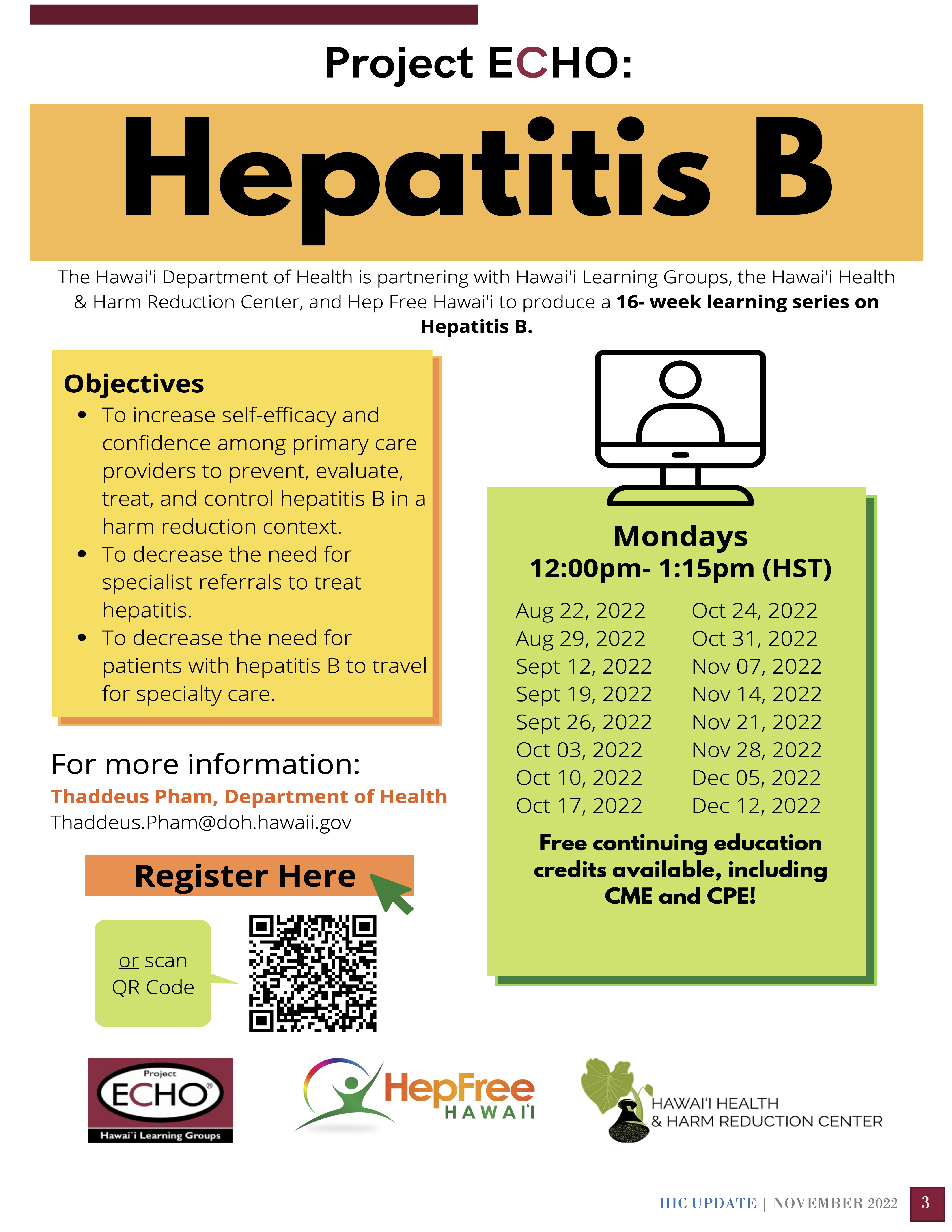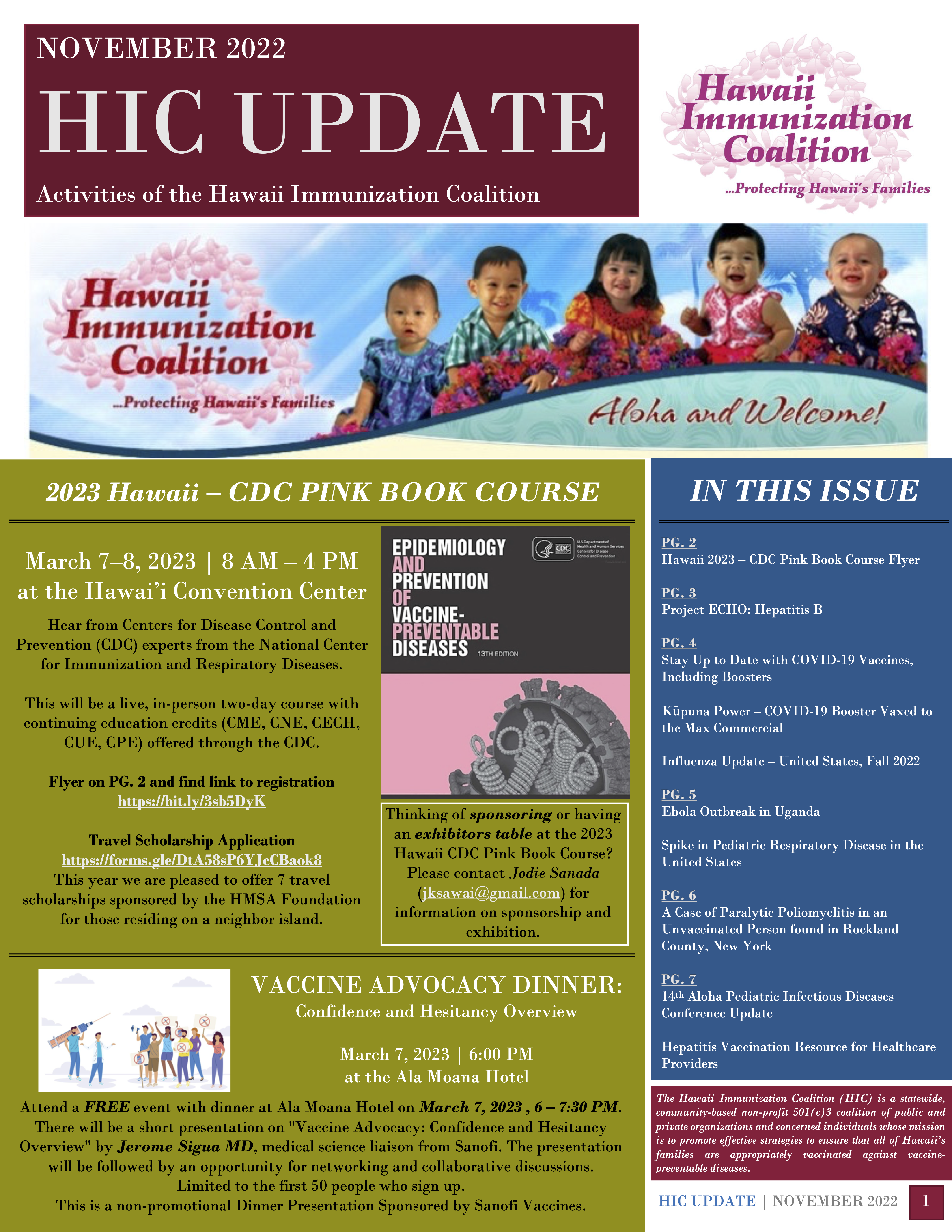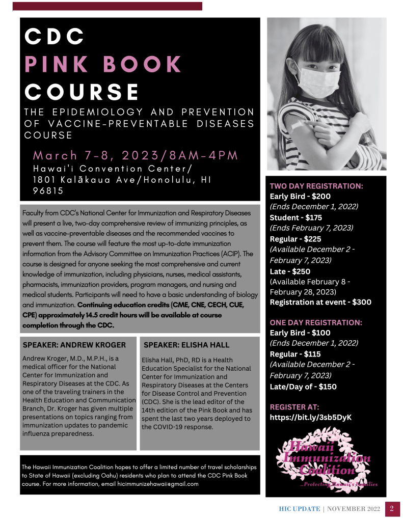 The Hawai‘i Immunization Coalition (HIC) is a program of Hawai‘i Public Health Institute, a 501(c)3 non-profit organization. HIC partners with other immunization providers in Hawai‘i to increase immunization rates across the lifespan.