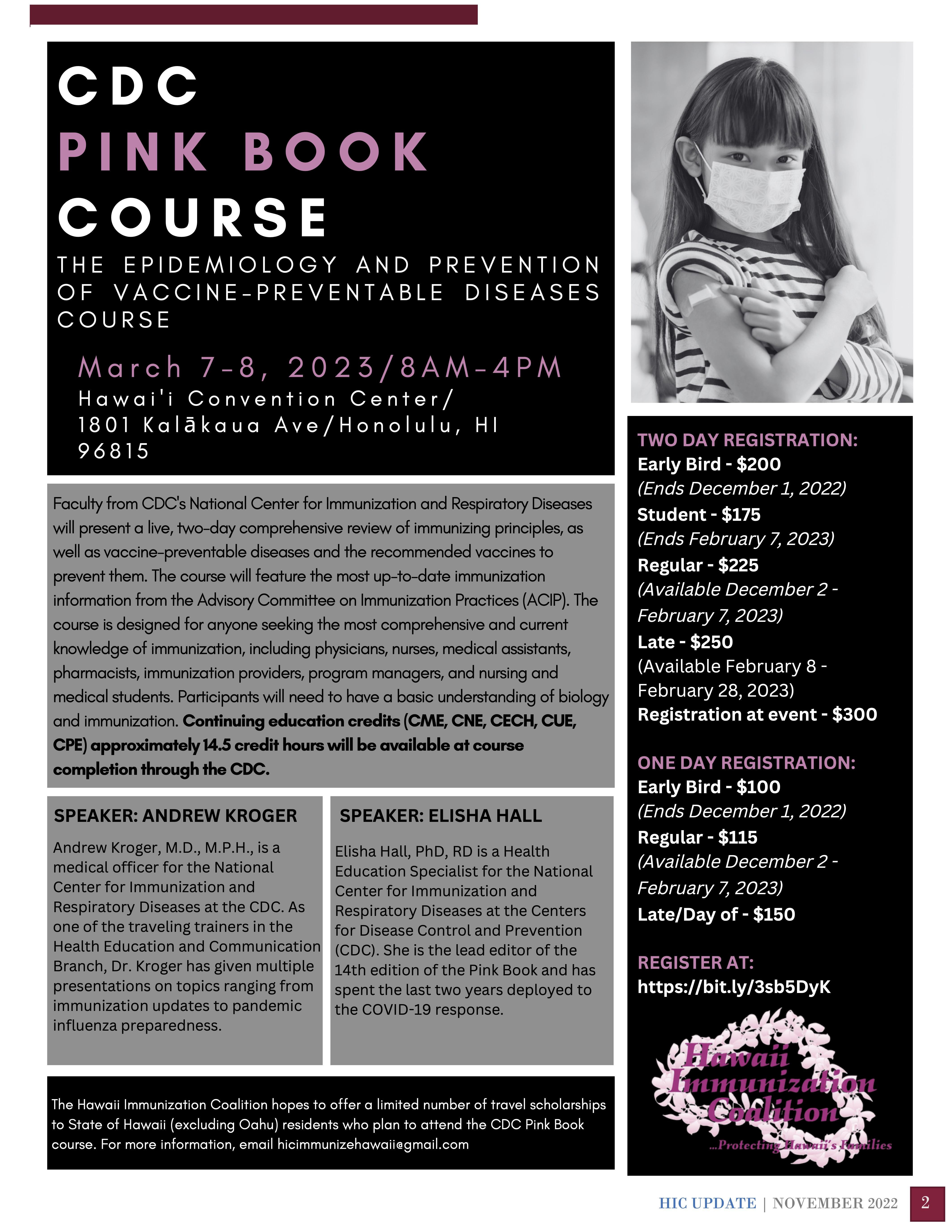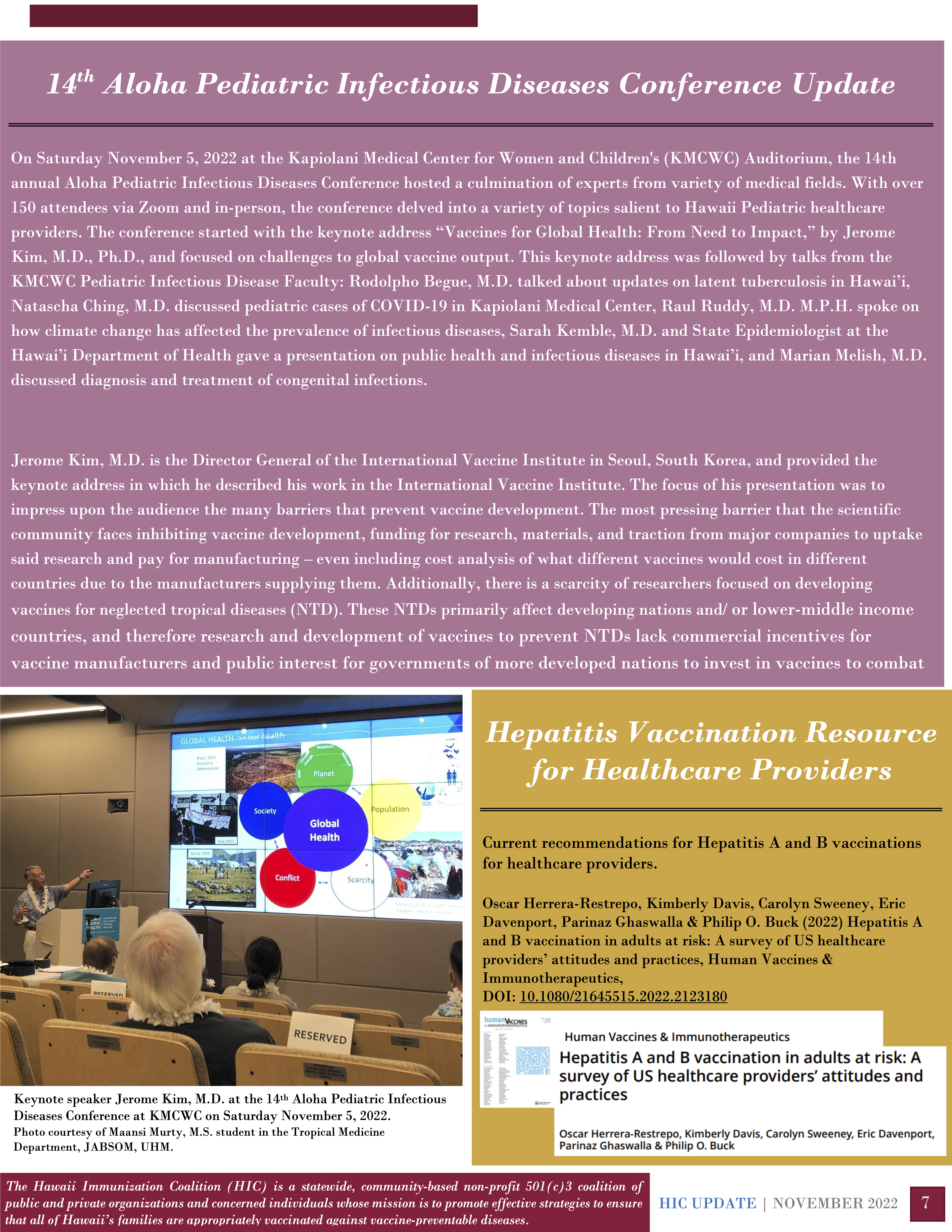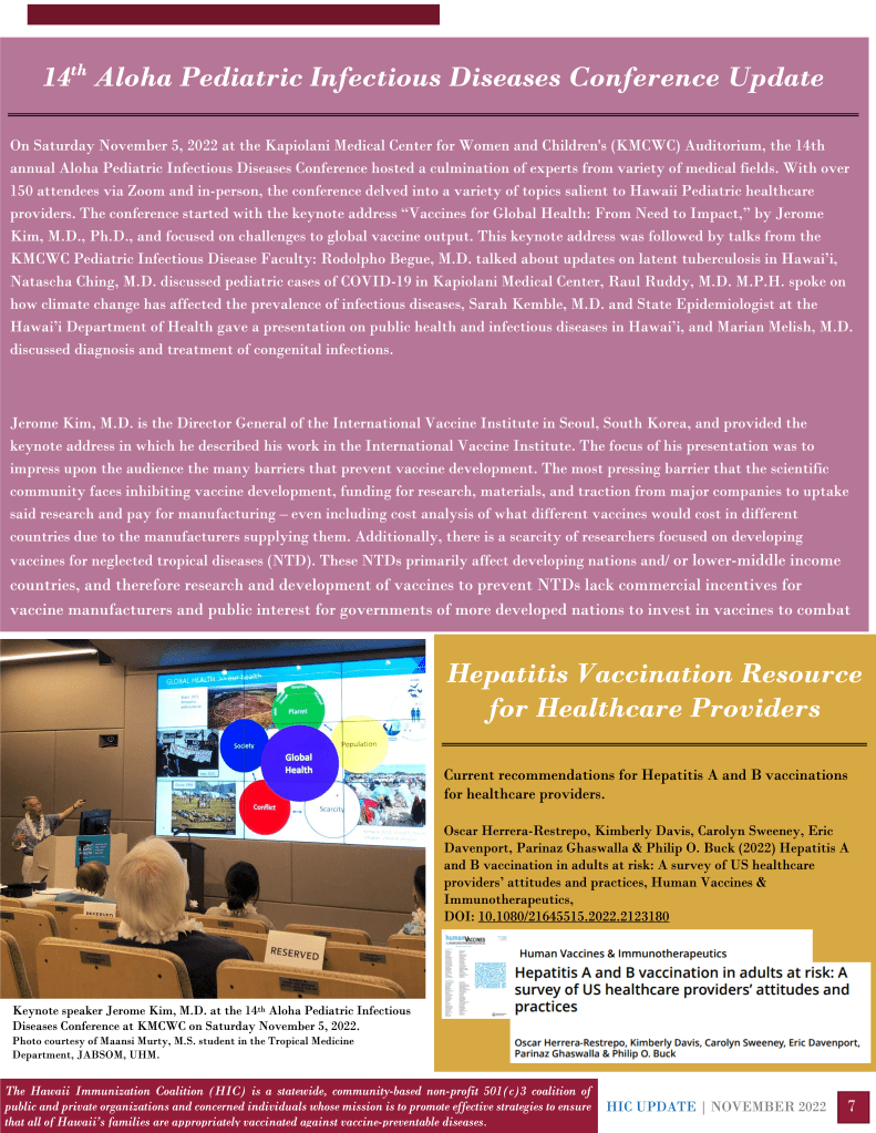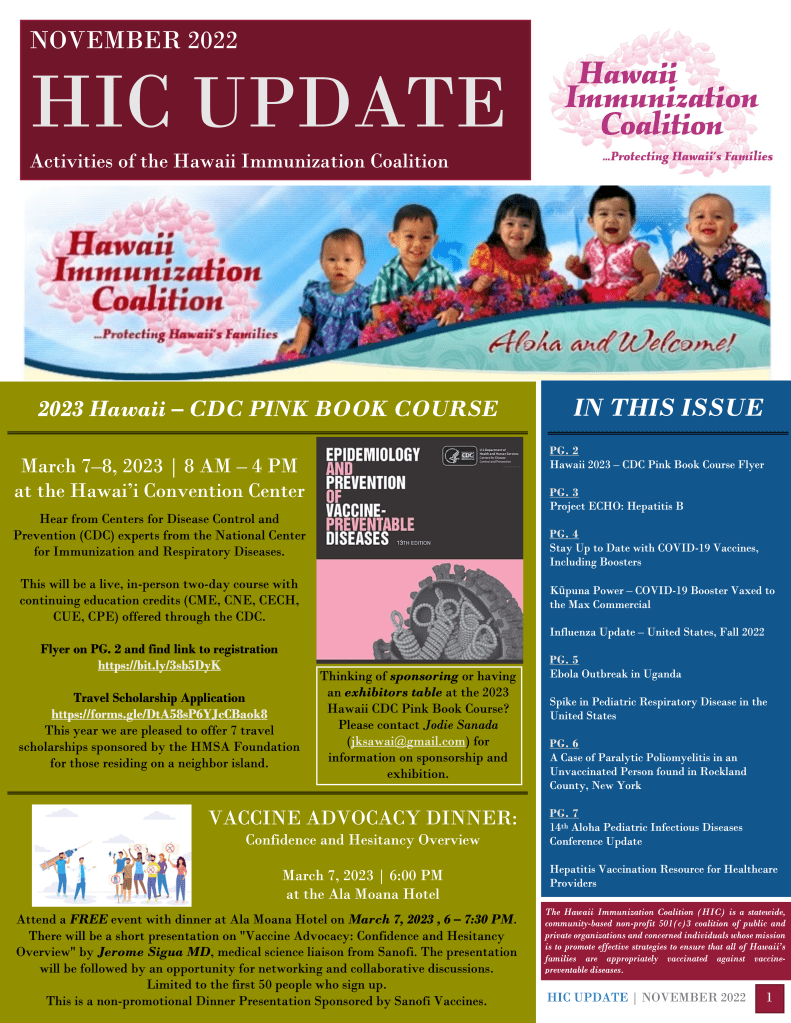 The Hawai‘i Immunization Coalition works to ensure all of Hawaii’s families are appropriately vaccinated against vaccine-preventable diseases.